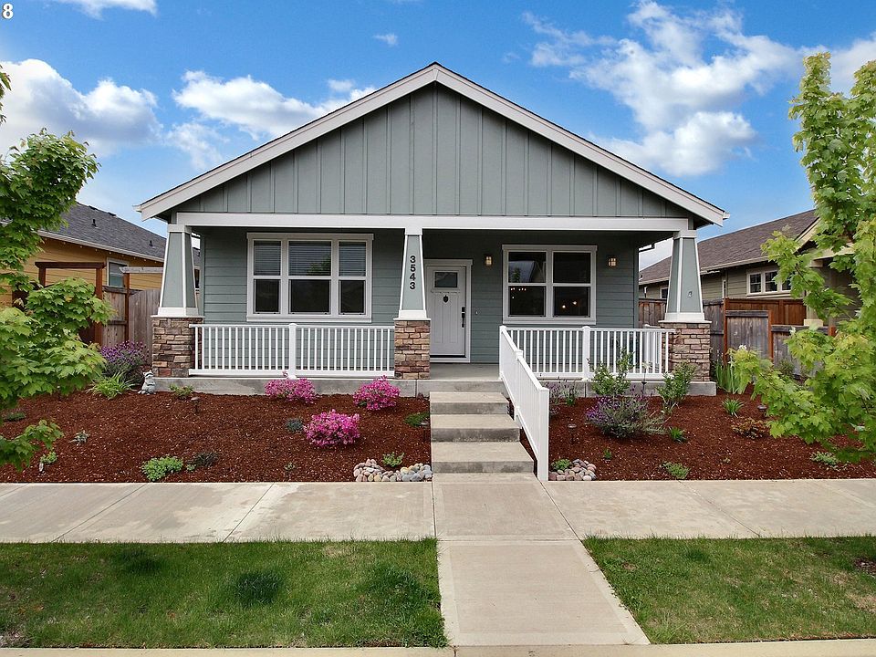 Move in ready home at the Bungalows in Chegwyn Village! Quality built cottage style, delightful front porch, has rear entry 2 car garage.Spacious greatroom, gorgeous gourmet granite kitchen,SS appliances, gas cooking! Large laundry room w/built ins. Vaulted master suite with walk in closet. Fenced yard and sprinkler system in. Fabulous neighborhood area w/pride of ownership, original owner. Close to parks, schools & shopping. No HOA.AC