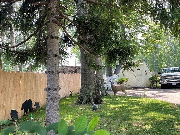 The quaint gazebo has a natural wood ceiling and adds to ambiance and privacy of the yard and view!
