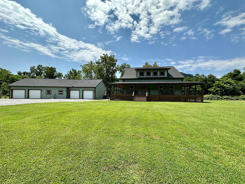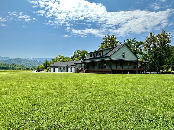 This beautiful primitive farmhouse was built just last year on the banks of the French Broad River. With right at 2,700 finished square feet under roof, over 1,900 sq ft of covered decking area and a detached 2,100 sq ft four-car garage this one will be hard to beat! The sellers built this dreamy home on two lots of the stunning River Crest development giving you almost three acres of level land and plenty of buffer space between you and any future homes that will be built. They have enjoyed this waterfront oasis for the last year but now their plans have changed and are hoping to find someone that will love it as much as they do. From the moment you hit the driveway you are surrounded with mountain views both long range and up close and personal. The deck wraps completely around the home providing shade and for extra protection they also have solar screens installed to lessen the heat inside but not block the views. Walking in the home you immediately see the craftsmanship and attention to details that this builder insisted upon thinking this would be his forever home. The shiplap walls and extra wide rough cut pine flooring flows through everything except the bedrooms, which have lush carpets to soften the feel. The kitchen features a gas stove, wood countertops, a large island and enough cabinets for everything you could need, even though there is also a stand-alone pantry with its own screen door. The master bedroom is on the main level and has a soaking tub and a step-in tiled shower. Each of the three full bathrooms is equipped with its own custom vanity to keep the feel cohesive throughout the home. The laundry and a secondary bedroom finish off this floor. The upstairs consist of an open area family room where they currently have a pool table set up and a separate TV area. This floor also features its own bedroom and full bathroom and additional attic storage for all those extra seasonal decorations. The outside of the home has a fenced in back yard, an above ground pool, a hot tub and not to mention over 250' of river frontage! I could go on and on from the fact that all the interior walls of the home are insulated or to the fact that the four car garage also has a roll up door off the back which allows better accessibility as well as a breeze, BUT the best thing for you to do would be to call and schedule a showing and see this place as soon as you can!