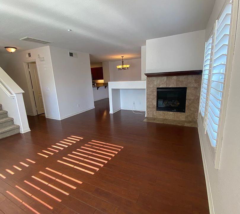 Move in Special $500 off first month's rent! Don't miss out on this beautiful 2 bedroom, 2.5 bath, 1386 sq. ft, newly built unit in 2007. This 3 Story Townhome has beautiful wood flooring & cabinetry, granite countertops, stainless steel appliances, recessed lighting, wood shutters, fireplace, balcony and 2-car tandem garage with added storage room. New paint throughout provides the home with an even more open and light appeal, the large laundry room includes a full-size washer and dryer plus storage just off of the kitchen, Walk-in closet in master bedroom. A/C and Surround Sound System included in this great corner unit. Owner covers HOA fees, which allow you full access to the pool, a safely gated community, and playground within the community as well! Don't miss this one!!