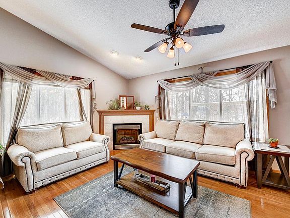 Spacious rambler located on private 1.85 acre wooded lot! Main floor features gleaming hardwood floors, vaulted ceilings, and an abundance of natural light. Open concept living is great for entertaining. 2 master bedrooms, both complete with walk-in closets and private bathrooms. Lower level features large family room and ample storage, including storage room and built-ins. Yard has lush gardens and raised garden beds. This home is a must see!