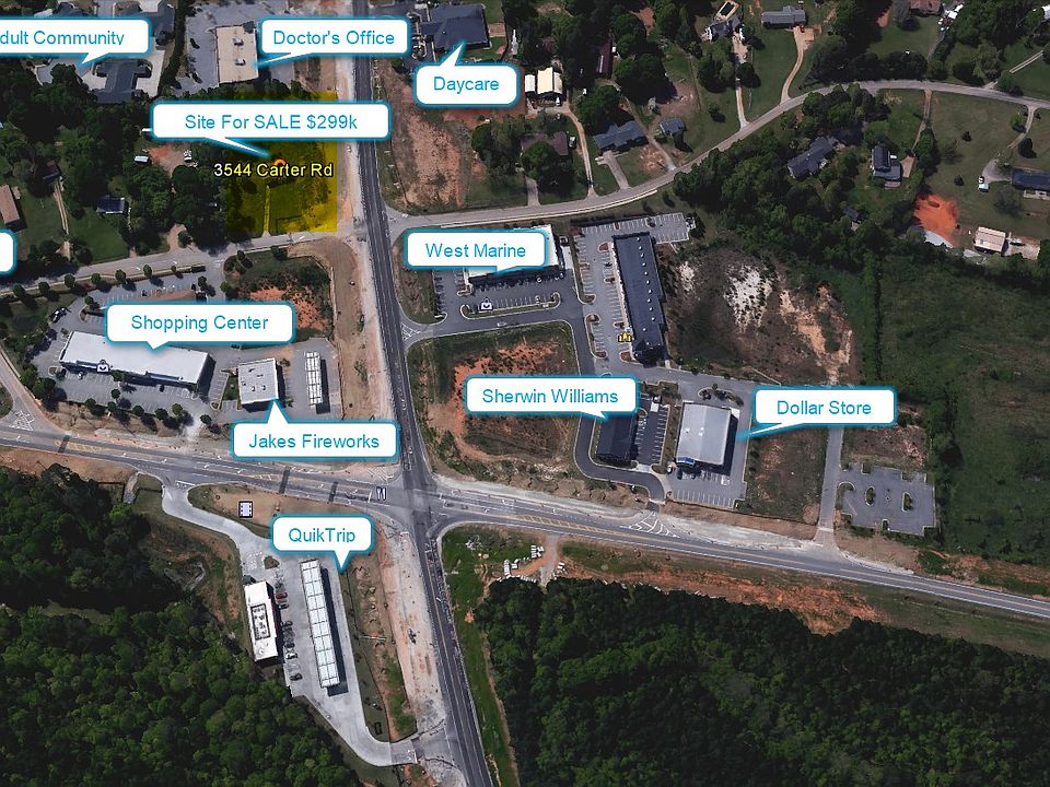 1.43 acres zoned C2 with 315 ft of Friendship Road frontage and road frontage on Carter! Heavily traveled roads with GREAT potential commercial investment! Friendship Rd/Lanier Islands Pkwy recently finished a 4 lane expansion with turning lane onto Center Rd. This piece of property has tons of potential and only ONE lot over from Buford Highway. This property also receives a ton of drive by traffic because of existing Commercial and retail offerings and proximity to Lake Lanier Islands. This property would be great for many types of businesses with tons of visibility.