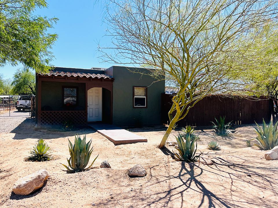 Super Cute, Centrally located 2 bedroom Casita (NOT Apartment) with Covered Porch, off street, gated parking and fenced yard. Mature landscaping front and back provides shade and year round green. Recently remodeled with new appliances. Washer and Dryer on premises. Close to the Loop, many restaurants, The Hop Shop (Tucsons BEST brewery) and multiple parks. Owner pays for Water and Garbage. Other Utilities Renters Responsibility. First and 1 month Security Deposit required. 1 year lease. No Smoking. Tenant responsible for keeping property ad home in good condition.
