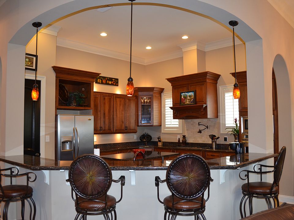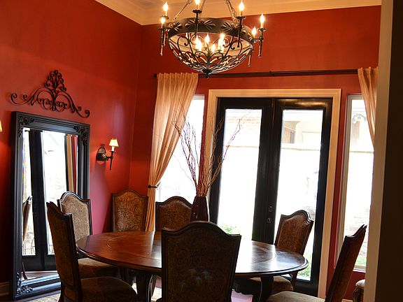 French country home built in 2009, 3 bedrooms, 2 baths. Floor plan is great for entertaining. Home features 12 foot ceilings with architectural detail throughout including large 10 foot dome in dining room with rope lights and barrel ceilings in master bath and foyer. Huge kitchen with custom cabinets. Granite in kitchen, bathrooms, and laundry room. Whole home audio indoors and out. Large 10’x40’ deck and fenced back yard. Irrigation system. Security system. Cute quaint courtyard off formal dining room. Plantation shutters and much more!