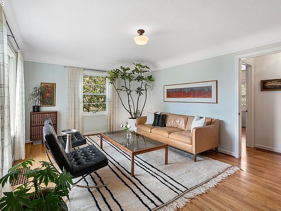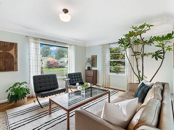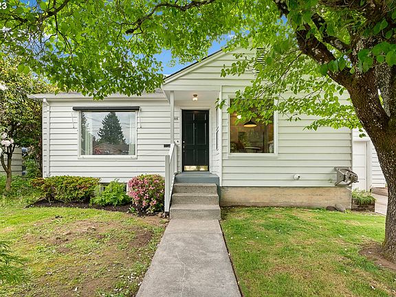 This turn-key ranch charmer in FoPo lives large with a full basement and massive, private, "urban farm" backyard. Host outdoor dinner parties amid thriving mature fruit trees and rows of ready garden beds. Natural light floods in through large windows and reflects off hardwood floors, illuminating coved ceilings. Darling eat-in kitchen boasts original cabinets and glass-doored hutch. Very usable basement with high ceilings and half bath is the perfect oversized family room, with space to wall off an easy third bedroom with the existing egress window. Garage has been split into two excellent workshops. 220V outlet in basement adds to the creative potential. 2018 roof still under warranty; 2011 high-efficiency furnace, a/c, and water heater; newer electric panel; brand-new dishwasher; fresh interior paint. Oil tank decommissioned. Walkscore 83, Bikescore 99. Quick access to Foster, Montavilla, Division, Hawthorne, and 205. This one will go quick! [Home Energy Score = 6. HES Report at https://rpt.greenbuildingregistry.com/hes/OR10215585]