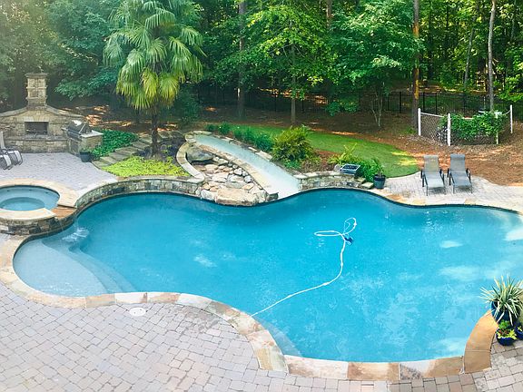 Private 1.31 Acre Oasis w/ Pool w/Hot Tub & Slide,Stainless Steel Outdoor Grill & Fenced Backyard.This Fabulous Home has Gated Entry, NO HOA & Numerous Renovations including a NEW ROOF!Chef's Kitchen w/Quartz,Island,Dual Ovens,Custom Cabinets & Keeping Area w/Fireplace.Gorgeous Hardwoods on Main. Master Suite w/Trey Ceiling & Fan.Master Spa w/Tiled Shower, Separate Tub,Dual Vanity and His/Her Closets.Two Bonus Areas for Media & Play.Oversized Dining Rm,Finished Terrace Level w/Second Kitchen,Rec Area,Bedrm,Full Bath,Office & Separate Movie Rm.Property backs up to Creek!