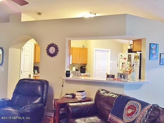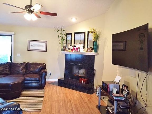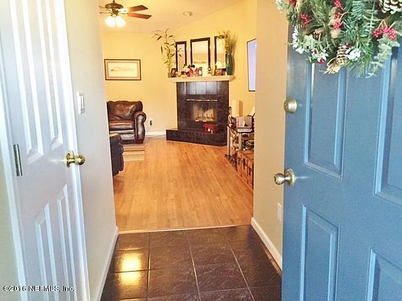 Charming 3 bedroom, 2 bath home with so many extras! New roof in 2011, Pergo wood floors, tile foyer, indoor utility, water softener, sprinkler system with yard well & pump, covered porch, new privacy fence in back yard. Open great room has cathedral ceiling, tile fireplace, and custom surround sound speakers. Walk-in closets in 2 bedrooms. Convenient to town, Town Center, airport, beaches, Mayport and more. Move in ready!
