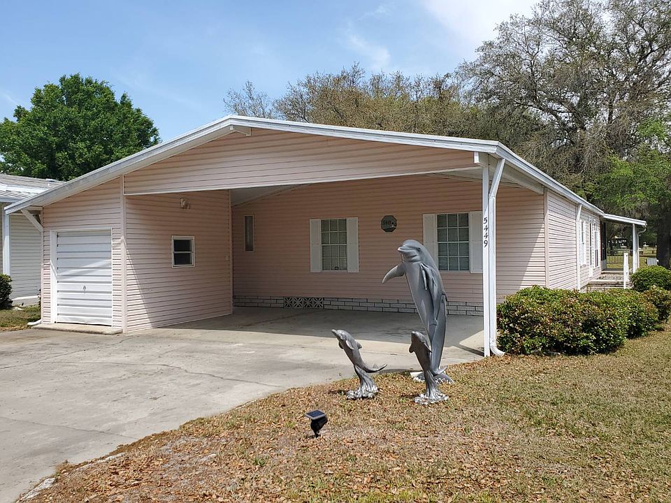 This home is on LEASED LAND with a monthly lot rent of $875.00 in the PREMIER Southport Springs Golf and Country Club community (55+ and pet-friendly). This home is located on a perimeter lot with a pretty view of the golf course through large oak trees. It has 1176 sq. ft. of living space including two bedrooms, two full bathrooms plus a huge (14' x 28') Florida room. The Bryant HVAC unit was new in 2016. Home needs updating and TLC and it comes unfurnished. KITCHEN (11' x 13') This eat-in kitchen has a plenty of space for a table and chairs. Appliances include a GE coil-top stove, Frigidaire top-freezer model refrigerator and a Maytag dishwasher (needs repair). There is a stainless steel double sink, a skylight and fluorescent lighting. The flooring is a sheet vinyl. There are two pantry cabinets and a bar counter. DINING ROOM (10' x 11') Ample room for a formal dining set. There is a big built-in china cabinet plus three additional shelf units. The floor is carpeted. LIVING ROOM (13' x 15'6") Good-size room that comes with a huge entertainment cabinet. There is a lighted ceiling fan and carpet on the floor. MAIN BEDROOM (11'6" x 14'6") Big room with a lighted ceiling fan and a huge, wall-length walk-in closet. A king-sized bedroom set will fit in here. The floor is carpeted. MAIN BATH Has vinyl flooring and a wide, corner double-sink vanity. There is a walk-in shower and six linen cabinets and a skylight. GUEST BEDROOM (10' x 13') The floor is carpeted and there is a lighted ceiling fan. This room has a walk-in closet. GUEST BATH Has a single-sink vanity and a tub/shower unit. The floor is vinyl. There is lighting over the sink, a medicine cabinet and a skylight. LAUNDRY Is located off near the side exit door. The Speed Queen washer (needs repair) and dryer stay with the home. Whirlpool washer and dryer remain. There are two cabinets for your laundry supplies. The floor is vinyl. FLORIDA ROOM (14' x 28') Huge room with indoor/outdoor carpeting and a lighted ceiling fan. There are vinyl windows on three sides giving a wonderful view of the golf course. One corner of the room has had a leak in the ceiling. The concrete floor has cracked but was leveled less than two years ago. EXTERIOR 1994 home has vinyl siding and an asphalt shingle roof (age unknown). The Bryant HVAC unit was new in '16. Located on a perimeter lot with a great shaded view of the golf course. Double-wide driveway holds four cars with two under the carport. There is also a golf cart lane leading to the 8' x 11' attached shed. It has a golf-cart door and shelving for storage. Home is close to clubhouse and pool. Southport Springs Golf and Country Club is the premier 55+ manufactured home community in Zephyrhills. It is beautifully landscaped and maintained. The clubhouse is large and modern. There is a restaurant and bar, a large heated swimming pool with two spas, fitness center, game room, tennis courts and a challenging 18-hole golf course. The residents are very active and pets are welcome. The lot rent for this home is $875.00 per month. There is an additional pass-on tax of $55.84 per month and a monthly trash pick-up fee of $12.18. Zephyrhills water is billed through the park. All listing information is deemed reliable but not guaranteed and should be independently verified through personal inspection by appropriate professionals. American Mobile Home Sales of Tampa Bay, Inc. cannot guarantee or warrant the accuracy of this information, measurements or condition of this property. Measurements are approximate. The buyer assumes full responsibility for obtaining all current rates of lot rent, fees, and pass-on costs. Additionally, the buyer is responsible for obtaining all rules, regulations, pet policies, etc., associated with the community, park, or home from the community/park American Mobile Home Sales of Tampa Bay, Inc. is not responsible for quoting of said fees or policies.