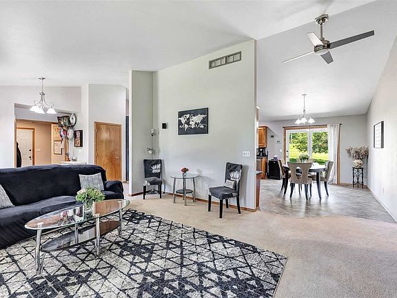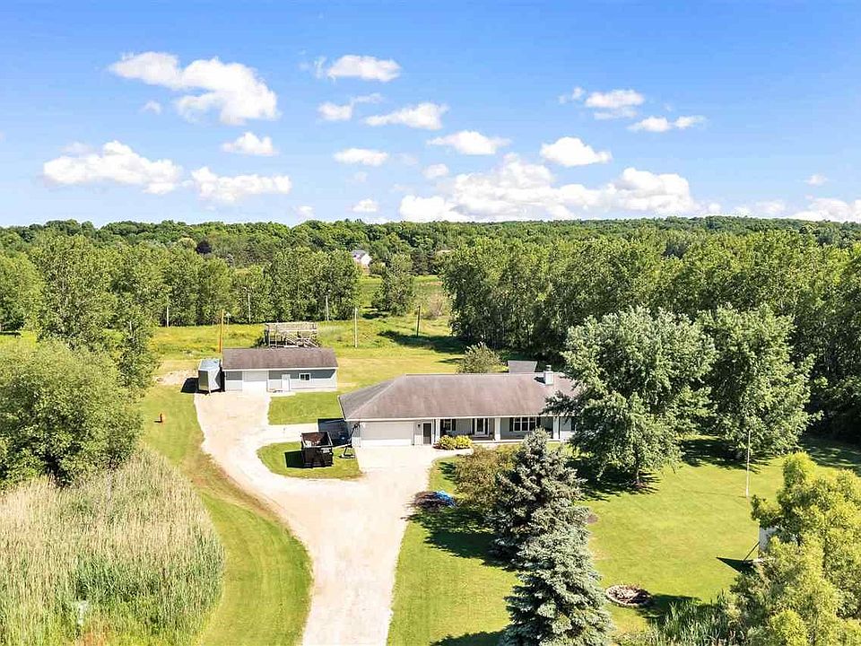 What a rare find! 5.13 Acres (per assessor) This spacious 4 bedroom(2 with full baths) Ranch offers a spacious Kitchen w/maple cabinetry, center island, pantry, 1st floor laundry, and cathedral ceiling in the huge living room with gas log fireplace. A few recent updates include, Furnace & AC, some flooring, counter tops, lighting & more. The attached heated garage is extra deep w/a dividing wall for an additional work/parking space! Step outside and you will be pleased to see the 34x44 additional garage/shop with heat and water. All this conveniently located in Ledgeview!!
