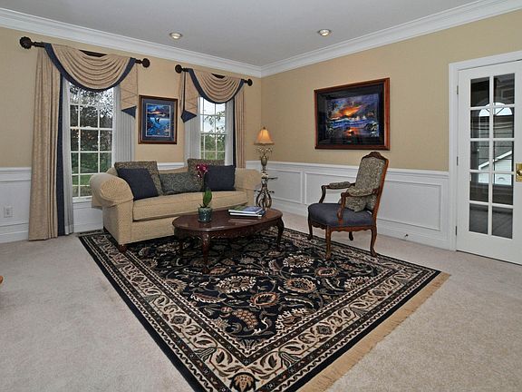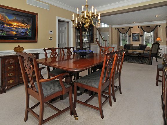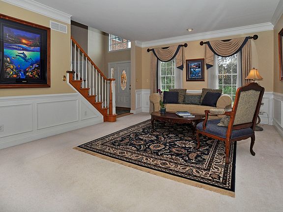 This classic and meticulously maintained brick front Cornell model by Toll Bros. in the Buckingham Woods neighborhood has been beautifully updated! The front staircase, banister and hardwood floors were recently refinished and extend from the 2-story foyer into the kitchen. The formal living room and dining room feature crown molding and wainscoting. The retreat, with a cathedral ceiling offers additional living space. The first floor study/library is an ideal quiet space. Enjoy preparing meals in the large recently remodeled gourmet kitchen which features granite counters, island with breakfast bar, wine fridge, tile backsplash, electric cooktop, brand new GE stainless steel appliances, including double wall ovens (convection on top), dishwasher, microwave and newer refrigerator. Additional cabinets and countertops were added to enhance the beauty of the kitchen. Enjoy quiet evenings after a long day at work in the dramatic 2-story family room featuring a beautiful floor-to-ceiling brick fireplace, and a back staircase. Double doors lead into the main bedroom suite with a sitting room, master bathroom with stall shower, whirlpool tub and vanity, and large walk-in closet with a professional closet system. A beautiful Princess suite and two more bedrooms that share a Jack 'n Jill bathroom complete the second floor. The professionally finished basement with a wet bar is the perfect spot for entertaining. Summertime is almost here! Enjoy barbecues and sunsets on the newly refinished deck. New central air 2011, water softener system, whole house surge protector, Invisible Fence. Conveniently located for commuting to NY, NJ or Philly. Only 5 minutes to Historic Doylestown with museums, shopping, parks and more! Enjoy award winning Central Bucks School District. A Must See!