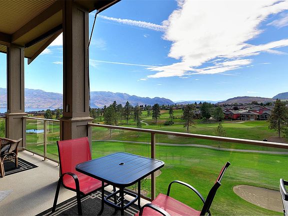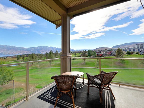 STUNNING LAKE VIEW at sought after "ARIA". BEAUTIFUL & IMMACULATE 2 bedroom, 2 bath unit on TOP FLOOR overlooking the 8th fairway. View is not obstructed by other decks! Floor to ceiling windows to the view. Soaring 11' Ceilings and Fireplace add to an already elegant home. UPGRADES include; Renovated Ensuite with spa like walk-in shower that has marble tiles & extra linen closet, ISLAND KITCHEN: additional 4 feet of b/i pantry style kitchen cabinets, upgraded LED lighting, Granite Counter Top & Stainless Steel appliances; 2ND BEDROOM: has an entire wall of custom built-in shelving, desk and murphy bed. Dual access to deck, 3 retractable sunshades. Additional shelving in Laundry Room. 2 PARKING STALLS, PREPAID LEASE. NO TRANSFER TAX, NO SPEC TAX. Rentals allowed with a 6 month min stay. Pets permitted (no vicious breeds). Walk to shopping and 2 Eagles Golf. WON'T LAST!