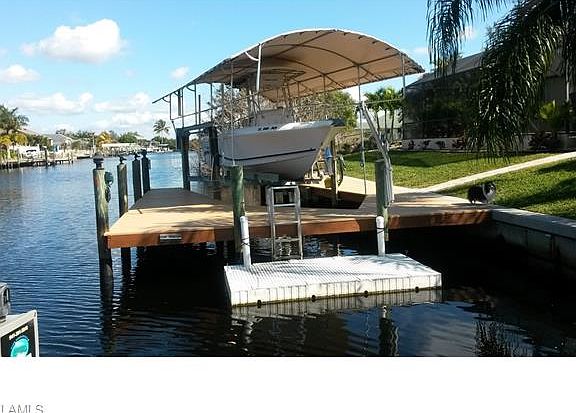 UPCOMING WATER/SEWER ASSESSMENTS NEGOTIABLE. 3 Bd 2 Ba. $60,000+ UPGRADES. GULF ACCESS just minutes from Matlacha fishing paradise, 110 ft wide canal, 7500lb boat lift with new canopy, new synthetic deck. Electric and solar heated Pool. Salt pool equipment added and pool resurfaced with pebble tec. Newer reverse osmosis water treatment throughout the house. Remote controlled roll down shutters on lanai and front door, windows secured with accordion shutters. 2013 newer AC. Patio all fenced in with mango, orange and lemon trees. Amazing neighborhood with all gulf access upscale homes. One block away from Joe Stonis Park with walking paths, tracks, courts, water views etc. High vaulted ceilings, open floor plan. Tile living room dinning and wet areas. Like new berber carpet in Bedrooms. Beautiful kitchen with island. Everglades green granite counters. Brand new refrigerator. Nice size pantry in kitchen. Separate Laundry room inside residence, off kitchen. Lots of closet space Owners are very proud of their lovely home they have added many upgrades between 2013 up to today.. You will be very happy to see this home. Ready to move in. Blocks to Publix and shops.