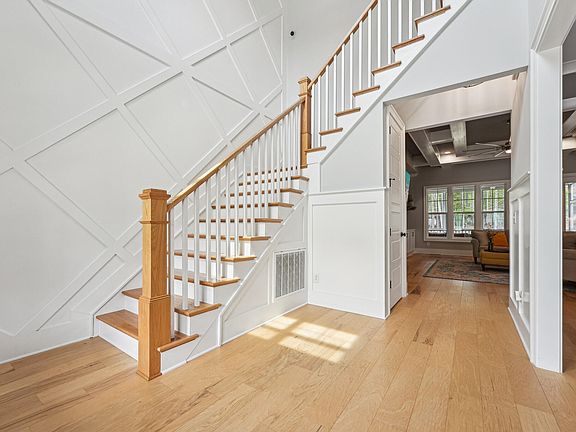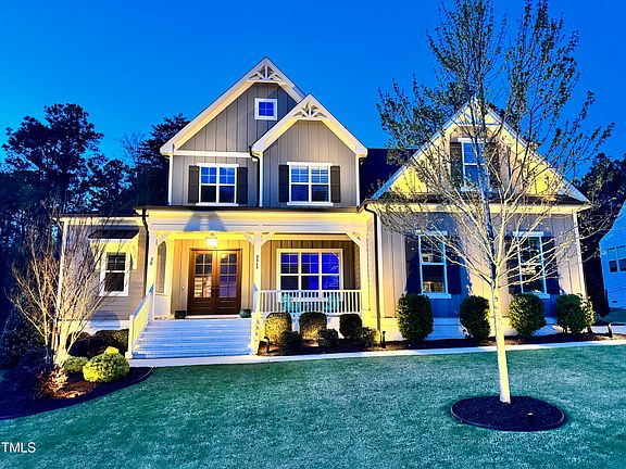 Ideally situated in Wake Forest near Joyner Park, Wegmans, and Falls Lake, this breathtaking home is nestled on a meticulously landscaped, pool-ready lot adorned with front and rear landscape lighting. Boasting extraordinary custom features, including dramatic ceilings, intricate accent walls, built-ins, and extensive millwork throughout, this home exudes elegance and sophistication. A grand two-story entry sets the tone for the home's opulence. The formal Dining Room, adorned with wainscoting and an ornate ceiling, features a fully automated Saltwater Reef Tank teeming with exotic marine life, creating a captivating centerpiece. The exquisite, open-concept Family Room seamlessly flows into a sleek gourmet Kitchen embellished with white cabinetry, Quartz counters, a modern tile backsplash, SS appliances, and a massive center island with bar seating. A hidden walk-in pantry adds to the Kitchen's allure. The main-level Primary Suite offers abundant natural light, plantation shutters, a wood-beamed ceiling, and a luxurious spa-like en-suite bath complete with a freestanding soaking tub, separate tiled shower, dual vanity, and a spacious custom WIC. An additional Guest Bedroom and full bath are also located on the main level. Upstairs, a hallway with custom built-ins and engineered flooring leads to a massive Bonus room featuring French doors, a large WIC, and a shiplap accent wall highlighting the wet bar and floating shelves. Two spacious bedrooms and a versatile Flex Room with custom built-ins, ideal as an office or playroom, complete the upper level. The outdoor space is equally impressive, featuring a large screened porch with a vaulted stained ceiling overlooking the tree lined backyard. Additional upgrades include a whole-house water softener, filtration system, reverse osmosis system for drinking water, a 3-car garage with an automotive 4-post lift and scissor jack, a whole-house Generator, and a hardwired high-definition security system with four cameras and a recording doorbell. This exceptional property offers a harmonious blend of luxury, functionality, and prime location, making it a true gem in Wake Forest.