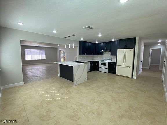 Beautifully Updated 4BR/2BA Single-Story Home w/ Upgrades! Spacious and move-in ready! This home features a recently upgraded kitchen with modern quartz countertops and new cabinets. Open floor plan with a large living room, new two-tone interior paint, and tile flooring throughout no carpet! Enjoy a huge backyard with a covered patio, perfect for entertaining. 2-car garage and plenty of storage, centrally located and less than 10 minutes from the strip