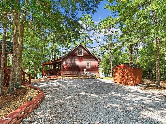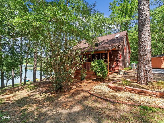 CURRENTLY UNDER CONTRACT, SELLER WILL CONSIDER BACKUP OFFERS. Experience the allure of this one-of-a-kind 2-bedroom, 2-bathroom waterfront log cabin on Payne Lake in Washington County, Florida. With approximately 200' of waterfront property, and nestled on 2.9 acres across two lots, this charming home offers over 1,700 square feet of heated and cooled living space, in a rustic log cabin setting. The home also includes a spacious third-floor bonus room, perfect for an office, playroom, or potential third bedroom, which boasts two log cabin-style low-profile ceiling fans with lighting. The generous kitchen and dining area provide an inviting space for gatherings, and was updated in 2022 with new refrigerator, Kitchen sink and faucet. Both bathrooms received log vanities in recent years with custom sinks, including a matching log mirror in the Master Bathroom. Throughout the home, Luxury Vinyl Plank covers the floors, adding the look of wood floors yet with the resilience of LVP, and at the same time adding to the appeal of the log cabin. Relax in the cozy Living Room, taking in the gorgeous view from the two large 8' sliding patio doors that overlook Payne Lake, or unwind on the shaded back deck. This home has been updated in recent years to include a new roof (2019), new skylights, and new A/C System (2021). The exterior of the cabin is immaculate and leads down to the lake to enjoy the fire pit, sit/fish off one of the two docks, or just soak up some sun. Bistro lights lining the trees over the fire pit area, make for a great entertaining space for friends and family. Kayak or canoe early mornings or evenings on Payne Lake for exercise or to chunk a lure or two; this home has so much to offer. Truly a rare gem in the Panhandle of Florida, your very own waterfront log cabin awaits you. This cabin is an amazing primary residence or a perfect getaway, located just a short drive from Northwest Florida Beaches International Airport and the stunning beaches of Panama City Beach, Florida. Call to schedule your showing today!