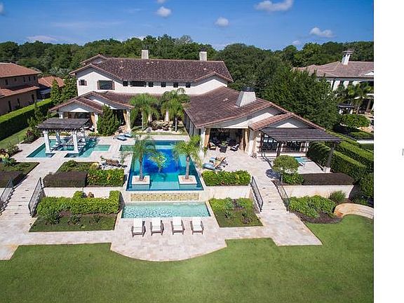 MAJOR PRICE IMPROVEMENT! One of the most exquisite estates in Seminole County, this Street of Dreams lakefront home presents a unique opportunity for today's most discriminating buyer. Privately gated on Markham Wood's luxury row surrounded by manicured lawns and towering oaks on over 3 acres, this two story home features only the best of the best in custom design. This custom 12,000 sq. ft. floorpan features a regulation size bowling alley, game room with bar, theatre room, spacious study with fireplace, 5 en suite bedrooms & 6 full/4 half baths. The outdoor sport court, open pool with summer kitchen, putting green, beach and boat dock round out the exterior of the home. Professionally decorated, the interior features are nothing less than stunning, yet create a casual elegance that is both warm and inviting. High timber beams hand selected from a Vermont barn adorn the main 2 story living space, along with custom light fixtures, draperies, & hand scraped hard wood floors. Gorgeous dining room with wine room and butler's pantry. Spacious family room with fireplace overflows into breakfast nook & gourmet kitchen with Wolf & Sub Zero appliances. Perfect for entertaining with a large open bar, summer kitchen, sparkling heated pool, spa, putting green, beach and boat dock all surrounded by gorgeous landscaping. Six car garage w/golf cart storage. Whole house natural gas generator. This fabulous home truly must be seen to be believed. Come live the good life on Rice Lake - don't you deserve the very best?!