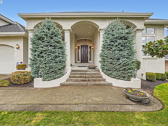 This stunning custom-built home, in the prestigious Barrington Heights neighborhood, offers a blend of elegance and sophistication. This home boasts soaring ceilings, Italian marble floors, and exquisite dentil crown molding throughout. The spacious formal living and dining rooms are perfect for entertaining, while the spacious kitchen, complete with stainless KitchenAid appliances, pull-out shelving, and a generous center island, is a dream for those who love to cook. The primary suite on the main level offers a peaceful retreat with direct access to the private patio, an attached bath, and a spacious walk-in closet. The office, complete with built-in shelving and elegant wainscoting, offers a quiet space to work or unwind. 3 additional bedrooms with their own bathroom reside on the main level. A beautifully landscaped yard with a large, private back patio is perfect for outdoor entertaining. Additional features include a three-car garage, front & back staircase, Mt Hood view from the front and living room, plumbed for vacuum system, tankless hot water heater, and extensive storage throughout. This home is truly a rare find and offers everything you need for comfortable, luxurious living. Complete with easy freeway access, close to shopping, dining, food carts and so much more.
