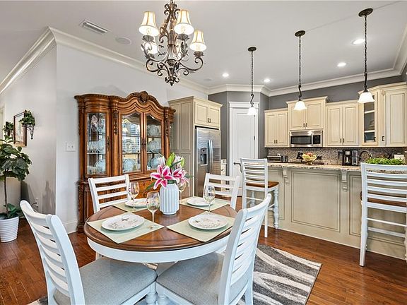 *** VRM: Seller will entertain offers between the higher & lower ranges of $425,000-$445,000 *** This exceptional custom-built home, located in the prestigious Woodlands at the Preserve, offers 3 bedrooms and 3 full bathrooms. Designed in the timeless style of Old-World French Country, it showcases meticulous craftsmanship and a range of exceptional upgrades. The seller's dedication to excellence is evident in every aspect, leaving a lasting impression on each visitor. Upon arrival, guests are greeted by awe-inspiring 8-foot-stained doors, leading to a hallway adorned with beautiful baseboards, thick double crown molding, and luxurious scraped hardwood floors that stretch towards lofty ceilings. The expansive living area is thoughtfully designed for comfort and entertainment, featuring an open floor plan with elegant built-in features flanking the gas log fireplace, complemented by a remarkable mantel that serves as a captivating centerpiece. The kitchen is a true culinary haven, boasting custom glazed cabinets, granite countertops, stainless steel appliances, a gas range, a generously sized pantry, and a charming breakfast bar. The formal dining area overlooks a tranquil backyard, providing an ideal backdrop for intimate gatherings. A notable addition made by the seller is the enclosed area at the rear of the house, featuring custom windows, beaded board accents, a storm door with exclusive pet access, and a delightful sink area nestled in the corner. This versatile space offers limitless possibilities, whether transformed into a cozy breakfast nook, serene sitting room, or dedicated hobby space. Located on the main level, the primary bedroom commands attention with its vast proportions and trayed ceiling. The accompanying primary bathroom is a sanctuary of luxury, featuring granite countertops, custom cabinets, a jetted whirlpool bathtub, a separate shower, and a spacious closet catering to all your storage needs. Upstairs, the second primary suite spans approximately 450 square feet, providing a private haven complete with its own bathroom area, offering ample personal space and tranquility. Each bedroom within this opulent home boasts its own tastefully adorned bathroom, featuring beautiful tile work, granite countertops, and custom cabinets. The laundry area is tastefully appointed with a well sized utility sink, custom cabinets, and a granite countertop serving as a convenient folding station. Additional amenities include custom blinds and window treatments, a surround sound system, a security system, an irrigation system, a tankless water heater, and two HVAC units for optimal climate control. The home also features a privacy fence, thick double crown molding, elegant, recessed lighting, a charming brick patio area in the backyard, and a brick driveway leading to the attached 2-car garage. A Generac home generator ensures reliable power supply. The common areas of this esteemed neighborhood are impeccably maintained, providing an enchanting setting for leisurely strolls around the serene lake. Don't miss the opportunity to make this extraordinary home yours. Call today to schedule your appointment and embark on a new chapter in your family's life with this New Beginning! All updates per the seller. Listing company makes no representation as to accuracy of square footage; buyer to verify. 2023-10-11