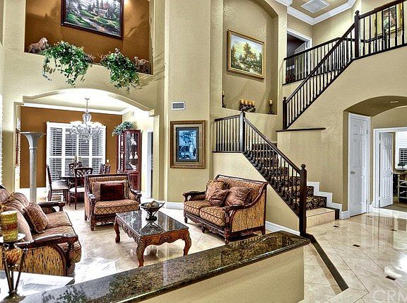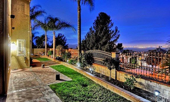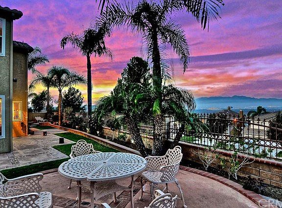 Your dream home is here at last! Homes on this Cul-De-Sac are rarely on the market. Beyond the Roman columns and imposing double door entry, experience an impressive living and formal dining area framed by an arched opening, a sweeping staircase, two-story ceilings and amazing window walls along the rear wing to maximize the spectacular night light views. Luxury upgrades include diagonally laid Marble floors, Plantation shutters, crown moldings, new high energy-efficient windows, 6" baseboards and top-tier carpet. Able to fill the demands of today's buyers, this wide-open concept of the great room is host to a chef-inspired kitchen featuring Granite countertops and full backsplash, Stainless Steel appliances and re-stained cabinetry, a massive family room with a warming fireplace, and plenty of casual seating for those special occasions. The palatial style master suite is a statement of elegance highlighted by 2 walk-in closets and an elevated jetted tub from which to enjoy the panoramic views. The downstairs bedroom adjoins a full bath. Spill out to backyard where privacy and amazing views are the main attraction. Expansive grassy and patio areas are complemented with a large deck that will inspire alfresco dining. It borders Yorba Linda. Must see