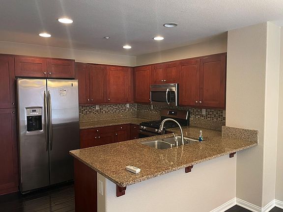Modern and bright with a spacious floorpan, this end unit, Tri-Level Townhome is now available!! Located in the highly sought after Bay at Point Loma, this 2 BR/ 2BA home features a spacious kitchen with granite countertops and cherry cabinetry, full-size laundry room, and a private balcony. Large garage with room for two cars AND extra space for storage. Enjoy a nice evening by the fireplace or go enjoy the private community pool area. Gated community and walking distance to shops and entertainment. Tenant pays Water/Gas/Electric