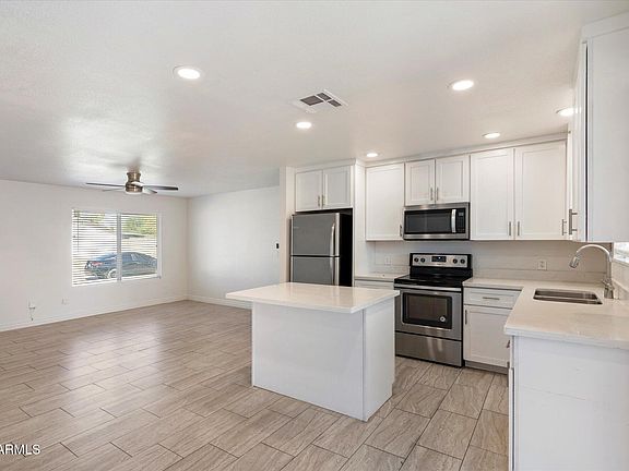 Great location near Chandler Fashion Mall. Freeway access just off McClintock onto the 202. 3 BR 2 BA with an open floor plan. REMODELED. Wide luxury tiles. White Kitchen with quartz countertops, and SS appliances. Carpet will be in the bedrooms. Primary bedroom with barn door en suite bathroom. Double sinks, quartz counters, ceramic marble tile floor, oversized glass shower and walk in closet. Hallway bathroom with double sinks and quartz counters, The tub is remodeled with gray backsplash tile and ceramic marble tile walls. Patio opes up to an oversized backyard. The backyard even has a shed for outside storage. The carport includes a wide gate to the back yard. Non-Smoking.