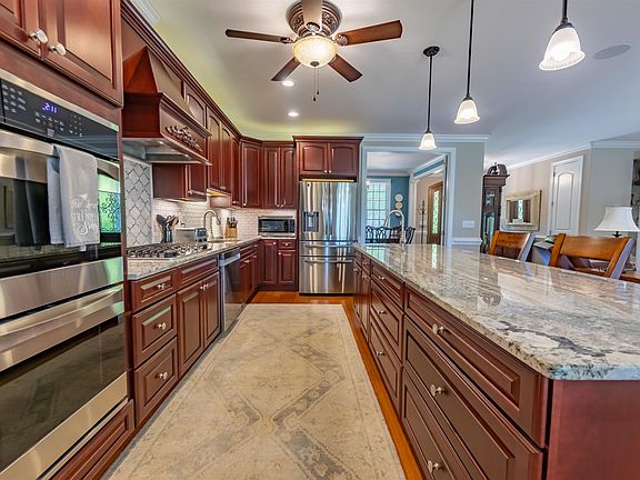 Great all brick home with easy living with all (3) bedrooms on the first floor! This home also offers an upstairs with additional space of a large bonus room, hobby room, bathroom and pool table/exercise rooms to enjoy. The layout is open and decorated in wood trim features that are simply timeless and hardwood floors. The kitchen offers wood cabinets with soft close doors, a gas range with a pot filler, granite counter tops, excellent tile backsplash design and the special features of a walk in panty to make it complete. The kitchen is is surrounded by a large living room, traditional dining room, a sun room with views of the back yard. This home is highly efficient with spray foam insulation, solar panels, a generator and 50 amp outlet for your electric vehicle in the garage.