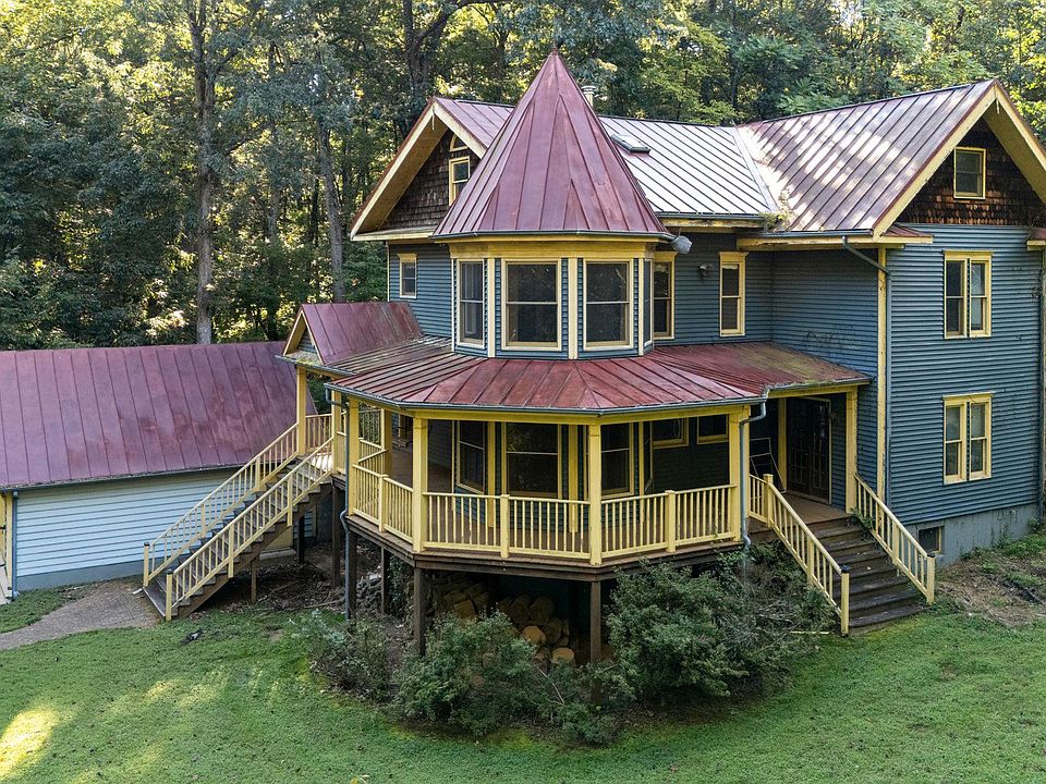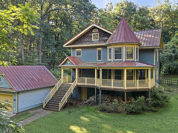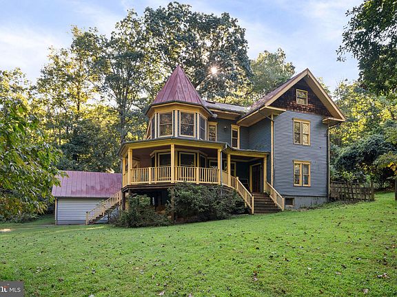 Victorian charm and then some! Welcome home to your custom-built home on 12 acres of privacy! Come sit a spell on your front porch and enjoy your wooded paradise. Just bring your imagination and sweat equity to what this home could be. This 3 bedroom, 2.5 bath home oozes charm and character - wide plank hardwood floors throughout your foyer, living and all bedrooms, and a wood stove to warm up to on fall evenings. Custom wood trim surrounds every window with individualized charm. The kitchen is the heart of the home, with loads of cabinet space and a spacious tile island, pantry and eat-in space. Large dining room with french doors leads out to your wraparound front porch. Three large bedrooms and 2 full baths upstairs, complete with unique claw foot tub. But your fourth floor/attic space has unlimited potential! Windows and skylights make this attic space warm and cozy, just perfect for a home office, library, or craft space. Lower level walkout basement boasts loads of storage and even more potential. Enjoy the sights and sounds of nature in your own private wilderness, including a trail throughout the property—perfect for hiking, biking, or peaceful forest walks. Detached double garage, great for a workshop. Only minutes from downtown Round Hill, convenient to shopping, wineries and the beauty of Northern Virginia! This one is truly a diamond in the rough, you have to see it to appreciate it!