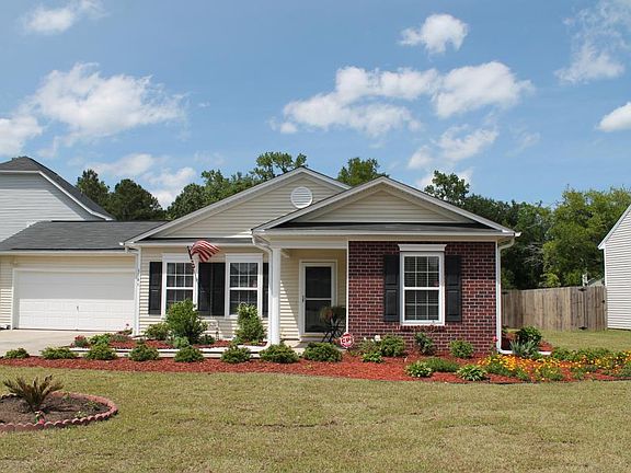 Beautiful one story home in excellent condition with lots of room centrally located in the Charleston area. It is completely move in ready! Paddock Point is one of those neighborhoods that just beg you to go for an after dinner walk! Or you can just sit out on the front porch in your rocking chair and watch your neighbors walk by or relax in your sun room. You are less than 30 minutes to the beach and about 15 minutes to everything else that Charleston has to offer. This home has a very open floor plan with a large family room. The kitchen has lots of room and counter space as well as an island. Your large master bedroom with a deep walk in closet. The master bath has a large garden tub/shower and dual vanities. Your backyard is completely fenced and private.Home is nestled in a quite community near horses and conveniently located to shopping, Interstate, Boeing, Bosch, Charleston University, hospitals, horse boarding and riding. Amenities include tot lot play area. Beautiful Ranch home with brick accent and 2-car garage. On a unique and quiet cul-de-sac home site. Home includes great special features like vaulted ceilings from great room to kitchen, deluxe master bath with large Garden tub/shower and dual vanities, taller kitchen cabinets with crown molding, recessed lights in kitchen, deluxe light package throughout, smooth top electric oven with microwave above and dishwasher, kitchen island and much more.