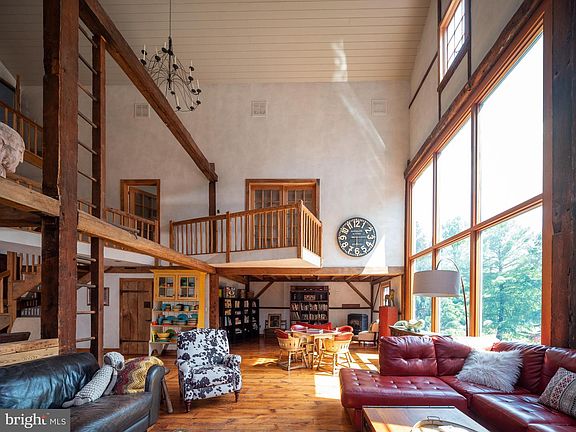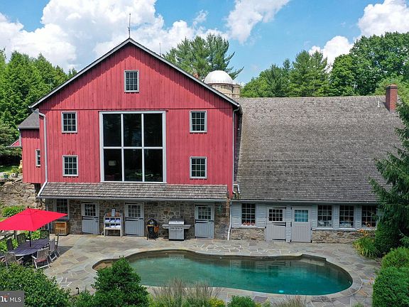 Great family compound! Rental unit! Priced under recent appraised value! Masterful design and rustic luxury are uniquely combined in this spacious, historic barn conversion located in sought-after Solebury Township. This one-of-a-kind home has tastefully developed over time, always with the ease of living and entertaining in mind. The open concept floor plan, with large yet intimate spaces, combined with serene views of the lush grounds and ponds will draw you in providing an oasis of calm.The dramatic interior spaces of this home showcase magnificent exposed timbers and structural supports of the original 1900 dairy barn. They are thoughtfully blended with gorgeous random width floors, soaring ceilings, and towering windows. A well-appointed kitchen includes custom cabinetry, upscale appliances and soapstone counters. Adjoining the kitchen is the open dining room perfect for large gatherings.Continuing through the main floor you'll find a hidden study/craft room with built-ins, the striking great room with a view of the pond, and a wood stove for a cozy ambiance. The main level master bedroom suite offers vaulted ceilings, a balcony sitting room, an abundance of closets, a laundry room, office, and a spacious bath with a walk-in shower and separate soaking tub. Also off of the main level is an in-law suite with a small kitchen and full bath.Upstairs are three additional family bedrooms, two with a shared hall bath. The third bedroom, with en-suite bath, has a Juliet balcony overlooking the great room.The property also has an adorable one bedroom, one bath accessory unit behind the silo. This apartment is only available for showings on your second visit.The lower walk-out level features an office, recreation area with full bath, and storage space. An impressive workshop area, once used as a potter's studio is fantastic flex space for your artistic endeavors. A most relaxing saltwater pool, bluestone deck and fire pit with views of the pond are the highlight of the outdoor space, while surrounding trees offer scenic views and added privacy. Like gardening? The property also displays a vintage greenhouse framework with zinc planting beds. A truly luxurious home, in a superb, peaceful location.