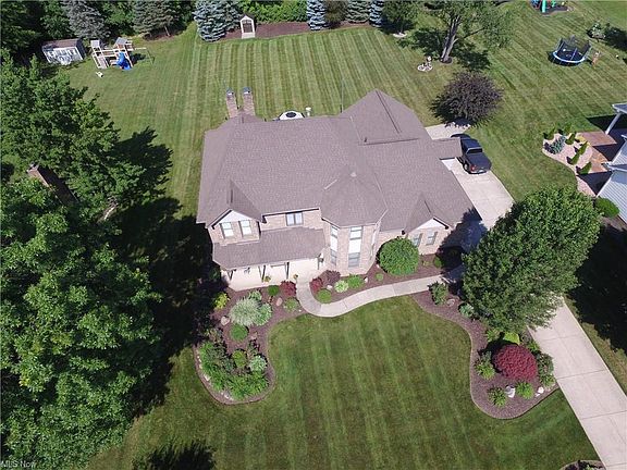 WOW...what a house! Stunning, custom built colonial offers 3174 sq. ft. PLUS the finished lower level! 2 story Foyer w/turned staircase welcomes you to this immaculate & well-maintained home! Huge Great Rm. opens to a cozy, sunken sitting rm. w/gas fp. Custom cherry Kitchen w/newer SS appliances, granite counters & travertine tile flooring. Private 1st floor office w/built-ins. Magnificent Master Suite w/luxury bath & 22 X 23 walk-in closet that includes a washer & dryer! 3 additional bedrooms & the main bath complete the 2nd floor. Finished lower level includes a wet bar, theater area, game room, fitness room & half bath! 3 car garage (single bay currently used as a workshop). Deck & stamped concrete patio overlook the private, park-like backyard! Fantastic location is close to everything...quick access to 77 and just minutes to the Akron-Canton airport! Dont miss this one...it is absolutely perfect!