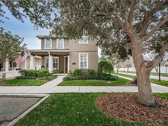 This ABSOLUTELY stunning traditional style two story 4/2.5/2 home is located in the sought after neo-traditional neighborhood of Longleaf. This gorgeous, well maintained home sits on a corner lot and the welcoming front porch has a lovely view of a village green and park. Updated spacious eat in kitchen features wood cabinetry, granite countertops, decorative backsplash, stainless steel appliances, gas stove with stainless range hood, and ceramic tile flooring. Hard wood flooring in main living areas and first floor master bedroom. Updated bathrooms with wood look ceramic tile. Second story features three spacious bedrooms with new carpet and full bath. Home has an open and bright floor plan. Plantation shutters. You will enjoy entertaining on the oversized screened in deck in the fenced in yard. Hot water heater 2018. Natural gas - range, hot water heater, and heating/cooling. Built in storage in garage. No flood insurance required. Longleaf offers a quaint downtown with restaurants and shops, town hall, heated community pool and spa, village greens, parks throughout, hike/bike trail, basketball/beach volleyball/basketball courts, full size baseball diamond, soccer nets, and more. Community events for all ages throughout the year. Pre-school and elementary school within the neighborhood. A unique and wonderful place to live. Centrally located with easy commutes to Pinellas or Hillsborough.