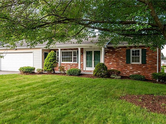 Beautiful brick-front ranch on spacious 1/3-acre corner lot with attached, oversized 2-car garage, front porch and more! The interior is bright and clean featuring a large living room with vaulted ceilings, skylights and a fireplace with wood-stove insert. The cherry kitchen includes granite countertops and stainless appliances. There is also a dining area that overlooks the rear deck and yards off the kitchen. The main level features two bedrooms and a full bathroom. Downstairs is mostly finished with three additional rooms plus another full bath and has a walkout to the yard. This home includes central AC, central VAC, alarm system and all appliances including a washer and dryer. Truly move-in ready. Come take a look!