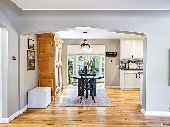 Built in 1949 on an expansive lot, this charming ranch-style residence beams with timeless character. Picturesque landscaping and a unique rock wall surround a front porch w/ a pergola. Enter into a light-filled layout glowing w/ newly refinished hardwood flooring. A cozy living area features coved ceilings and a large picture window. Enjoy late-morning brunch in a dining area opening into an updated galley kitchen boasting concrete countertops and stainless steel appliances w/ a gas stove. Natural light pours into a living area addition through skylights and a vast wall of windows. Sliding glass doors open seamlessly to a patio and a lush backyard w/ mature trees, a fire pit area and bar/shed. Retreat to a private primary suite flaunting built-in storage and an updated bath w/ heated floors and a dual vanity w/ concrete countertop. Two additional bedrooms are complemented by an updated bath. An ideal location affords easy access to Highlands, Tennyson, Sloan’s Lake, downtown and more. OPEN HOUSE: 12-3PM SAT 9/15 + SUN 9/16