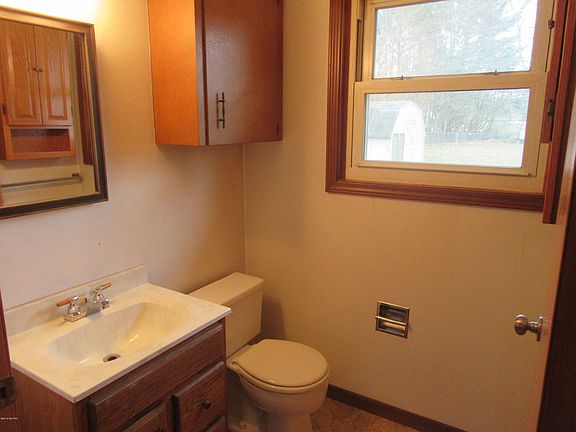 Main floor living in Norton Shores, 1970 square feet with handicapped accessible features. Home is wheelchair accessible. Huge master suite with 7 X 8 heated low threshold shower. Large kitchen with unique concrete counter tops opens to dining area and large living room. Main floor laundry and a two stall attached heated garage with ramped entry. All of this on an acre lot that sits back off the road. Basement is partially finished for a 4th bedroom and third full bath, just needs your finishing touches. A large shed in the back yard completes this package.