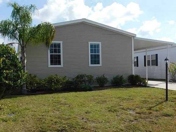 This exquisite 2014 Palm Harbor home is located in the premiere 55-plus community of Vizcaya Lakes. Turn-key ready, this uniquely-designed home boasts approximately 1440 square feet and an open concept floor plan. Vaulted ceilings soar, providing that sleek, contemporary look. Eyes are instantly drawn to the modern, sophisticated windows which become the focal point of the home's beautifully-furnished living and dining areas. Sunlight filters into the classic dining area from the screened lanai. Now walk past that spacious dining area into that welcoming screened lanai! You will surely spend lots of leisure time lounging out here, and also consider the extra dining space it affords; perfect for entertaining! The charming kitchen is light and airy, featuring an extensive breakfast bar, ample cabinetry, and sprawling counter space. Ceramic tile flooring is also a major kitchen highlight. And you cannot resist the appeal of those gleaming white appliances! The range is flat-surface, while the microwave is built-in for added convenience. Highly-decorative tile backsplash is the crowning touch. Okay, get ready to feast your eyes on this home's large and lovely den that could easily double as a home office, craft room, or library. The possibilities are endless. Enter the large, inviting master bedroom with all the extra closet space you'll ever need.This room is cheery to the max! The master bathroom is huge, with ceramic tile flooring, double vanities, and large, walk-in shower. Notice more striking ceramic tile flooring in the oversized utility room and all of the practical storage areas. The upgraded, full-size washer and dryer complete the package! Your guests will love the home's private guest bedroom with its plentiful closet space. The guest bathroom contains a tub/shower combination. Attached to the carport is a very large storage shed that's perfect for housing golf clubs, bicycles, holiday decorations, etc.This gem of a home won't be on the market long, so do not waste your opportunity to see it soon! (Monthly lot rent is approximately $625) Imagine yourself at a friendly 55+ manufactured home community with a small-town atmosphere where you can celebrate the good life. Experience fun-filled, carefree, resort-style living at its finest at Vizcaya Lakes retirement community. Just beyond your front door, the close-knit community provides a fantastic range of on-site amenities. Make a splash in the gorgeous, heated swimming pool. Indulge in a premium relaxation experience at the jetted spa with sundeck. Cast a line and reel in the catch of the day with shoreline fishing. Have a ball with numerous recreational amenities, try your hand at billiards and shuffleboard. Enjoy a calendar of planned social events and activities that allow you to get to know your new neighbors. Vizcaya Lakes is a proud pet-friendly facility. Discover the best location under the sun at Vizcaya Lakes. This intimate, serene haven is ideally located on Southwest Florida's Gulf Coast in Port Charlotte, within Charlotte County, on Charlotte Harbor. The community is only one mile from the El Jobean Fishing Pier on the Myakka River. Explore the natural wonders and attractions of famed Boca Grande or walk along the white sandy beaches of Englewood. Spend the whole day shopping at the Port Charlotte Town Center Mall and major retail chains are just five miles up the road. Seven challenging golf courses, including Riverwood Golf Course right across the lake, are within seven miles of your home. In addition, Charlotte Sports Park, spring home of the Tampa Bay Rays and home of the Charlotte Stone Crabs, is located three miles to the east. *All listing information is deemed reliable but not guaranteed and should be independently verified through personal inspection by appropriate professionals. Listing Company cannot guarantee or warrant the accuracy of this information or condition of the property. The buyer assumes full responsibility for obtaining all curre