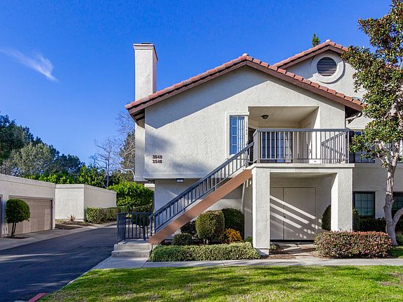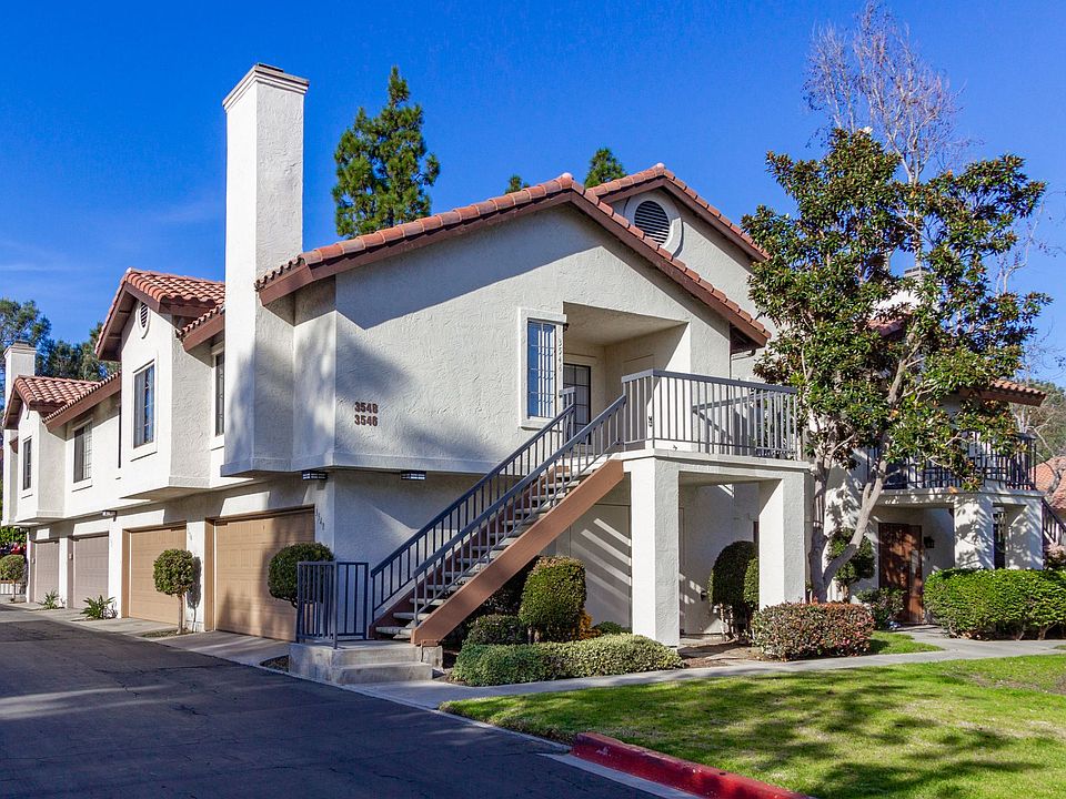 Beautiful 2 bedroom, 2 bathroom upper-level condo in the community Del Mar Highlands in San Diego! Enjoy a front porch entry to the spacious family room with a cozy fireplace, a light, bright kitchen with newer appliances, tile countertops, oak wood cabinetry, and views to the outdoors. The master bedroom offers a large closet, connecting bathroom, and walk-in shower. Additional property highlights include the laundry closet and 2 car garage. HOA amenities include pool, spa, outdoor cooking areas, and walking trails. Convenient to shops, markets, hiking trails, and beach communities!