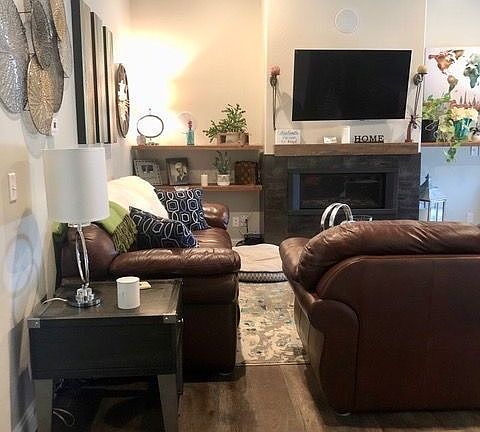 Upgrades! Upgrades! 3 bedroom 2 bath Elko home situated in a quiet neighborhood. This home has all the upgrades and then more! Like new home offers everything a home owner could want. Surround sound speakers flush mounted throughout home, sleek contemporary ceiling fans and lighting, brand new custom Hunter Douglas window coverings throughout, built in stone/glass fireplace, and high end gourmet GE profile stainless steal appliances with a blue tooth compatible multi burner gas range! Cook from your phone! Refrigerator negotiable. Owner spared no expense at making this house a home! Upgraded rustic wood flooring adds a beautiful touch that ties the main room and dining area together seamlessly. Granite counter tops, contemporary back splash, and upgraded faucets. Master bath offers over sized jetted tub, large shower, double sinks, and walk in closet. Fenced backyard with a beautiful lawn, sprinkler system, and a large extended concrete patio making an ideal space for entertaining. Custom shelves and cabinets in the garage add a ton of storage space. And feel safe at home with professionally placed security system! Like buying new but with all the upgrades & extras already done