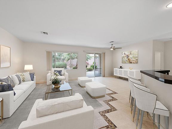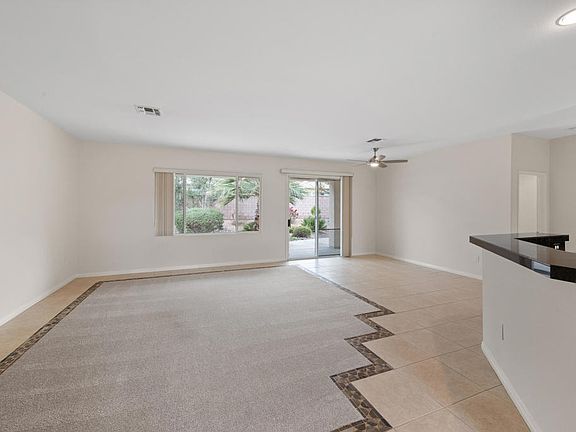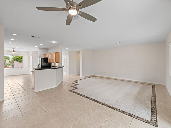 Impeccably Maintained! ''Montego'' popular great room split floor plan with 2/2 + Den. Located in the new section of Sun City Del Webb Palm Desert. MOVE-IN READY! Attractive curb appeal with curved concrete walkways in front and south side. Leaded glass front door. ALL BRAND NEW WINDOWS, CARPET & PAINTED THOUGH-OUT! Tiled floors in most areas, carpet in bedrooms. The Great room has a custom tile border & carpet inlay. Grante kitchen with matching appliances, under counter lighting and upper French cabinet doors all opens to the popular great room making it great for entertaining! The Primary suite is extended and bath with dual vanity sinks, Step-in shower and a fabulous custom walk-in closet! the split floor plan has the den, guest bath & guest bedroom on opposing side for added privacy. Beautiful & low maintenance landscaped yard has a covered patio and faces south/west. Convenient Inside laundry room and large attached garage gives this model great flow & popularity.