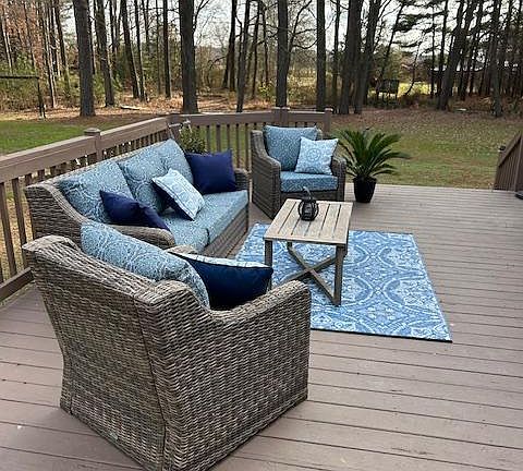 Pride of ownership shines throughout this home, lovingly maintained since 1992. A major renovation in 2006 nearly doubled the living space, transforming this property into a spacious 4-bedroom, 3-bathroom home ideal for comfortable living and entertaining. The impressive 20' x 27' kitchen is the heart of the home, featuring cherry cabinetry, quartz countertops, a walk-in pantry, and a cozy wood-burning fireplace—perfect for gatherings. The 25' x 25' living room offers an abundance of natural light through large windows and skylights, complemented by a gas fireplace for added warmth and charm. Step outside to a relaxing deck overlooking the beautifully landscaped, secluded backyard, offering peace and privacy. For those needing extra storage or workspace, the property includes two large pole buildings with concrete floors and skylights: 30' x 40' x 10' building with electric , 30' x 40' x 14' building. In 2025, the home received a fresh facelift with new roofs and skylights on the house and buildings, along with new siding, ensuring years of worry-free enjoyment. This property perfectly combines timeless care, modern updates, and versatile space—ready for its next proud owner.