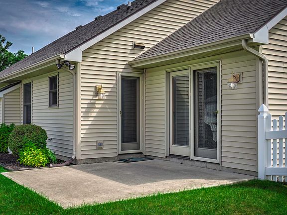 This New Haven Villa, built by Royal Homes of Delagrange is sitting on a Cul-de-sac. The master bedroom has a walk-in closet and a master bath room. The home has an additional 2 bedrooms and another full bathroom. The washer & dryer are located down the hall near the bedrooms. The spacious, 25 ft. by 15ft living room has a gas log fire place, custom hearth, and mantel. You will love the wood flooring throughout the living room and kitchen. The kitchen arrangement has wooden custom cabinets with pull out drawers for lots of storage and beautiful countertops. Off from the kitchen is a 15ft by 12ft Den that can be viewed through a double wide glass door out to a 12ft. by 12ft. cement patio for cookouts and with the use of a 70ft. by 17ft. fenced back yard for your dog. The parking garage is 22ft. by 22ft. with overhead garage door opener.