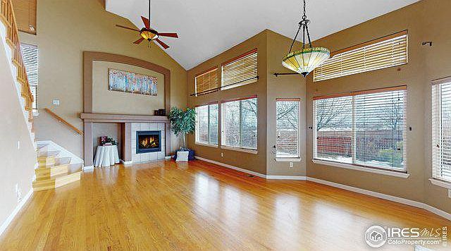 Upon entering the living room you are greeted by soaring cathedral ceilings and numerous windows allowing ample natural light. An open floor plan draws family and friends together, whether inside around the inviting fireplace, or outside on the stamped concrete patio and fire-pit. Other features include real hardwood floors throughout the home, stainless steel appliances, inviting bay-windows, 5-piece primary bath and walk-in closet, on almost a quarter acre with a 3-car garage. Just minutes from I-25, a block from Carlson Farms neighborhood park, pool and bike trail; and walking distance to scenic Johnstown Reservoir. Thermostat and garage door are both "Smart" features that can be run from your phone. Pre-inspection available upon request. Call for your showing today.