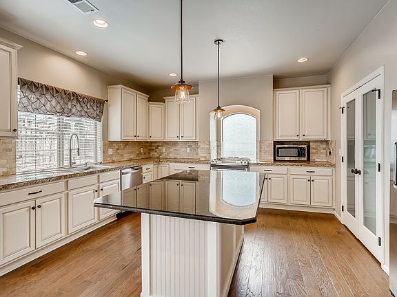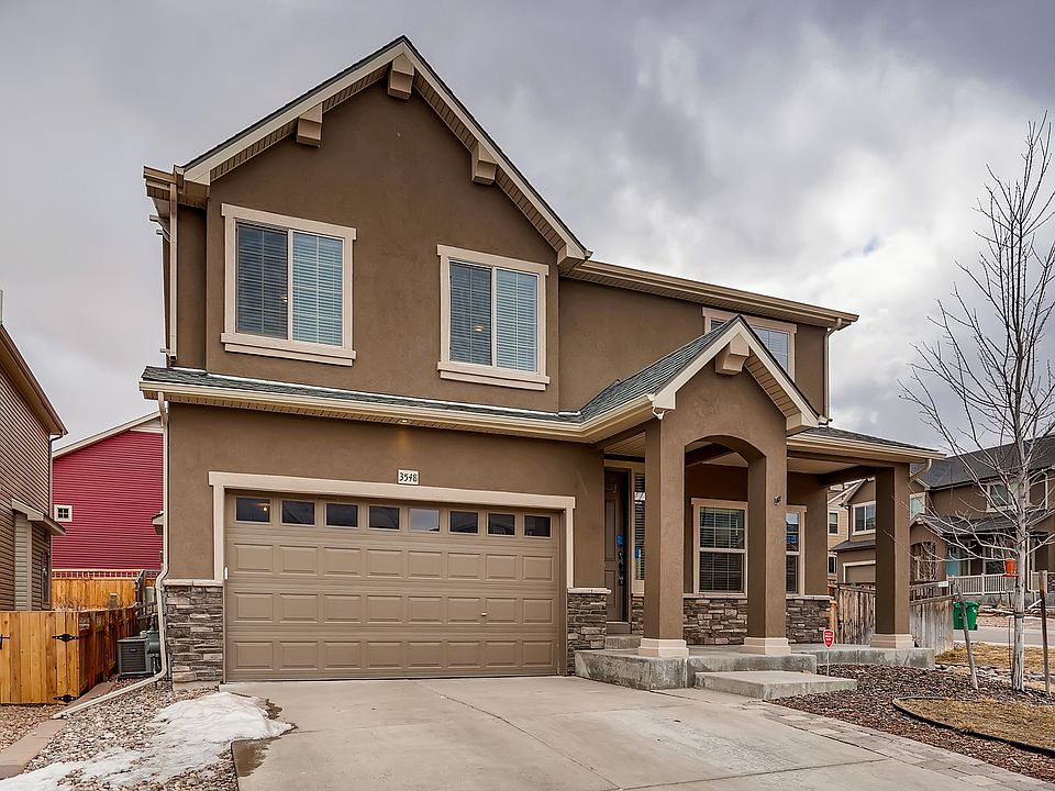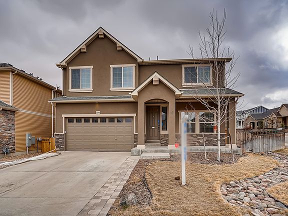 If you are looking for luxury living, privacy, and a spacious floor plan; the search is over! This beautiful 4 bedroom and 2.5 bathroom is full of upgrades! The kitchen is stunning with a large kitchen island with plenty of room for seating, granite countertops, a gas stove, steel appliances, and a walk-in pantry with French doors. The open layout of this home allows the kitchen to share space with the cozy living room featuring a beautiful fireplace, adding ambiance! Upstairs you will find the dreamy and spacious primary bedroom which includes a walk-in closet and an incredible en suite bathroom. The primary bathroom includes a dual sink vanity, a spa-like shower, and a modern garden tub! The backyard also has a great patio perfect for entertaining and summertime grilling. Located close to Bison park, local walking trails, Red Hawk Ridge Gold Course, dining options, and easy access to I-25 for quick commuting!