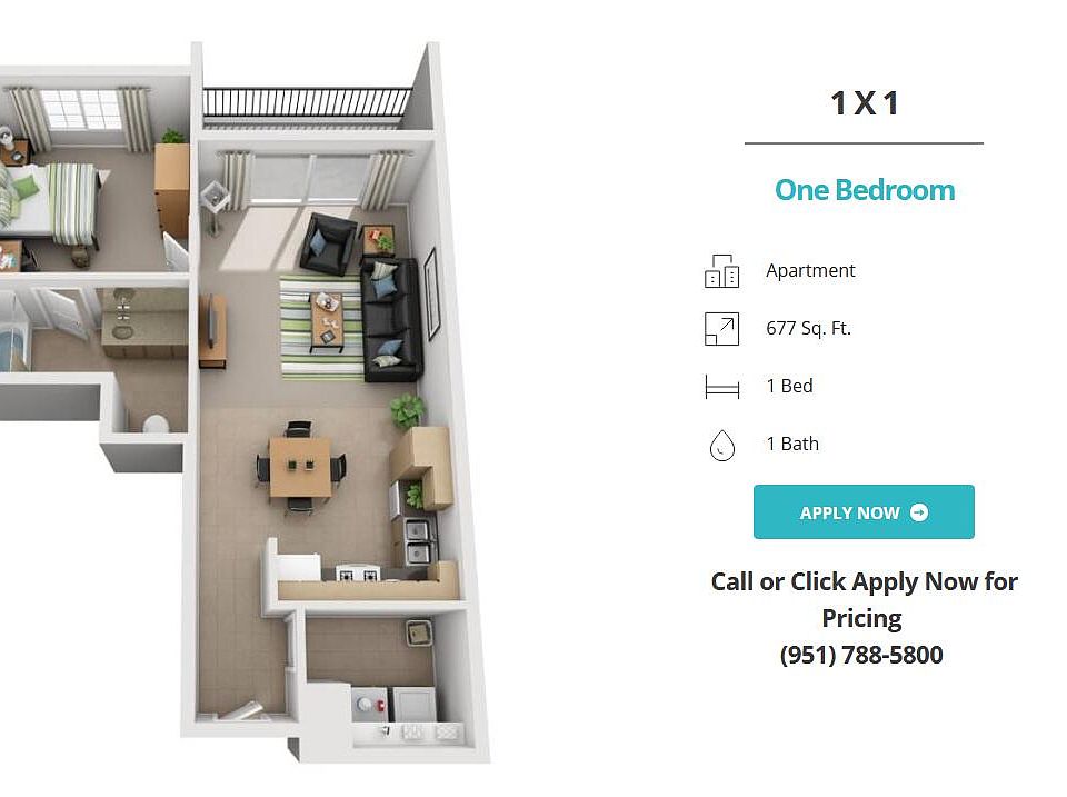 This 677 square foot apartment home has 1 bedrooms and 1.0 bathrooms. This home is located at 3548 Iowa Ave, Riverside, CA 92507.