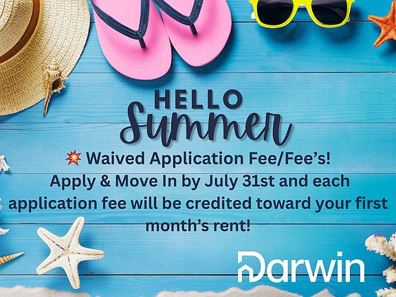 ** Limited-Time Offer: Waived Application Fees Apply and move in by July 31st, and your application fee/fees will be credited toward your first full month's rent upon approval. Don't miss out, submit your application today! Welcome to this spacious 4-bedroom, 2-bathroom pet-friendly home spanning 2,382 sq. ft. The kitchen is equipped with stainless steel appliances, including a refrigerator, microwave, range oven, and dishwasher, complementing the window coverings and ceiling fan for a comfortable living environment. The property features an attached garage, enhancing convenience for your daily needs. Enjoy the bathtub in one of the bathrooms, perfect for unwinding after a long day. This home is ready for you to make it your own. Schedule a tour today! This Home comes with Darwin's Internet Service Package, for an additional fee of $67, which includes high-speed internet service at a discounted rate. Please refer to your Leasing Agent for more details. All Darwin Home rental properties are subject to the regulatory statutes of the state and/or local municipal codes as well as all homeowner association community rules, if applicable. Photos are for representation purposes only and may not reflect all included amenities or appliances. Please inquire regarding a full list of included amenities and/or appliances. Prices and special offers are valid for new residents only and are not guaranteed until the application fee has been paid. Additional fees may apply, including but not limited to a lease administration fee, an application fee, and pet fees (where applicable). Please note that if the property has a concession and the lease begins on the first of the month, the concession will be applied to the following full month's rent. Before applying, please review our Application Qualifying Criteria and Pet Guidelines in our Leasing Help Center. Darwin Homes proudly offers professional property management across 20+ markets, complete with 24/7 maintenance to ensure an exceptional resident experience. We do not advertise our properties on Craigslist, Facebook Marketplace, or any other classified ad websites. If you find any of our listings on such platforms, please contact us immediately - we want to ensure your safety and security in helping you find a legitimate rental home. CONSENT TO TEXT MESSAGING: By entering your mobile phone number, you expressly consent to receive text messages from Darwin Homes. Msg & Data rates may apply. $55 Application Fee $150 Move In Fee