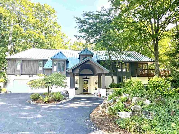 Drive up the fresh blacktop to your three bedroom (with option of fourth!) estate home of Swedish architect design which features panoramic views of the Sturgeon River Valley. New detached dazzling, heated, four car garage with second story unfinished living quarters, and attached private jacuzzi room. Twenty acres of forested land with rolling hills exudes the feeling of seclusion where nature abounds. Here is your opportunity to own all the finest that Gaylord has to offer!