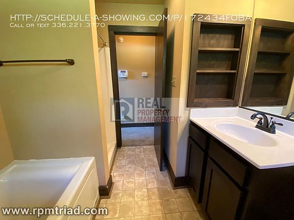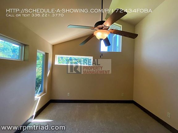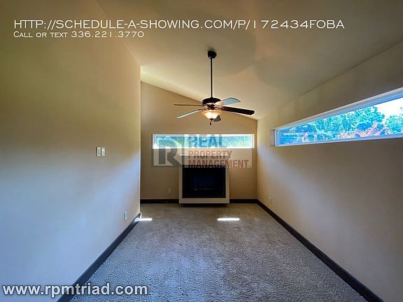 Modern 2 bedroom, 1 bath, for rent in Winston Salem that is located on a spacious lot with quick access to everything you need! Home is tucked away on a quiet street and is a must see! Vaulted ceilings and ribbon windows throughout! Home features spacious rooms, an electric fireplace, ceilings fans, some built in blinds, upgraded light fixtures and has ample kitchen space with floating shelves! Appliances include fridge, stove/range & dishwasher. Stack-able W/D included. Bathroom has separate tub & shower. Easy to maintain yard with trees for shade, an outdoor storage shed, and a fire pit. Screened in porch right off the dining area that is perfect for entertaining guest! Part of the yard is fenced in with a beautiful white privacy fence as well! Pets ok! 22 Month Lease, Security Deposit and Lease Administration fee applies. AVOID RENTAL SCAMS: Real Property Management is a licensed Real Estate Agency that exclusively markets and represents this listing. We do not advertise on Craigslist. We would never ask you to wire money, request funds through a payment app for initial rent, deposits, or take the key after your showing to move-in. Electric Fireplace Firepit Fridge Large Lot Screened In Patio Security System Access Storage Shed Stove/Range Updated Throughout
