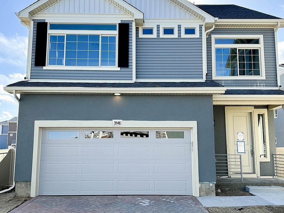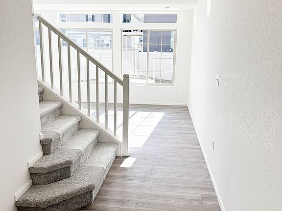 1901 total and finished 1875 sq. 3 bedroom, 2.5 bathroom, open floorplan, 8 foot front door, clerestory window package, chef kitchen with island, Stainless steel appliances, pendant lights over island, foyer, great room, enlarged patio, front porch, 2 car garage, primary suite with spa shower and dual vanities, walk in closets, upstairs laundry, smart space, gas line at range with 110v outlet, crawl space foundation, air conditioner, water heater, elevation B