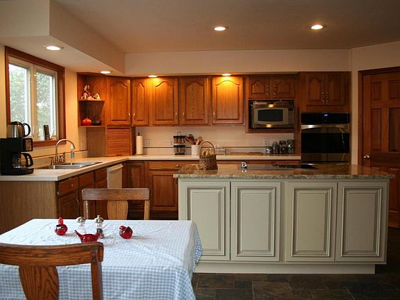 10 minutes from Indian Lake - boating, fishing & swimming! The perfect setting on almost 6 acres. This lot is perfect for those who appreciate the outdoors w/ every fruit & nut tree you can imagine & 1/2 acre stocked pond w/partially covered dock & deck & trails & newly built Amish vintage barn 20X30 feet finished & insulated w/cozy f/p & elec & loft area. Freshly painted exterior, open flr plan inside w/huge kitchen w/new granite island, stainless appliances, hdwd flrs, huge great rm w/cozy f/p 1st flr master suite w/master bath w/new light fixtures, quartz ctops & new faucets & back splash & his & her sinks & mirrors & new shower, Jacuzzi tub & walk-in closet. 1st flr laundry, loft area & jack-n-jill bath. Goodsized bdrms. Finished 4th bdrm in lower level w/fire exit ideal for a teena