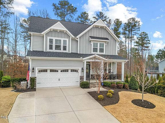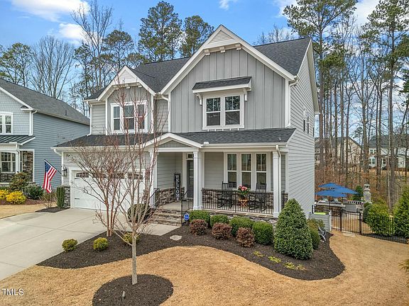 DO NOT LET THIS PROPERTY PASS YOU BY! Conveniently located this home provides easy access to shopping and dining while maintaining the peaceful atmosphere of suburban living. With downtown Raleigh and the Research Triangle only 20 miles away, commuting is simple whether for work or leisure. Nature lovers will also appreciate being just a short drive from Jordan Lake Recreational Area. This stunning open layout and spacious 5 bedroom, 4 full bath home has it all. Enjoy gorgeous quartz countertops, luxury vinyl plank flooring (LVP) and hardwood flooring throughout, a bonus/media room, a flex space that can serve as an office or dining room, custom board and batten and shiplap throughout, a new roof with gutter guards along the rear and sides of the house, a GENERAC 22 KW natural gas standby generator, a RINNAI natural gas tankless hot water heater, a reverse osmosis water filter in the kitchen, FX luminaire exterior landscape lighting in the front and rear of the home, and a concrete driveway pad extension. The walkout finished basement is ideal for entertaining or for multi-generational living with a kitchen, dining room, living room, and a bedroom with its own bathroom, walk-in shower, walk-in closet, and multiple other storage closets. Walk out back to your privacy fenced outdoor oasis consisting of a large paver area surrounding the 34' x 14' fiberglass in ground pool with waterfalls, and an updated pump and 400,000 BTU gas heater which are both fully automated. Entertain year round utilizing the outdoor kitchen which includes the built in Bull BBQ, Bull griddle, ice chest, Coyote outdoor rated built in refrigerator, and wood burning fireplace. Your .27 acre lot is bordered by aluminum fencing in the backyard and is one of the few homes buffered by beautiful pine trees along the back property line. MAKE YOUR APPOINTMENT TODAY!