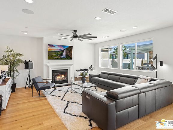 Nestled in the highly desirable Fairways community in the hills of Beaumont, this spacious home offers the perfect blend of style, comfort, and tranquility, as well as unparalleled designer upgrades to the tune of over $200k. This 4-bedroom, 3-bathroom home features an open floor plan with natural light flooding every room through expansive windows. Entering a formal foyer entry, you are greeted by solid blonde oak floors (throughout the home), leading to an expansive great room with gorgeous fireplace and views to the private backyard. The space flows seamlessly into a separate dining room complete with custom lighting and an incredible gourmet kitchen. Featuring top-end stainless steel appliances, quartz countertops, custom designer backsplash, large island and walk-in pantry, the kitchen is a showplace, ideal for entertaining. A separate guest bedroom and bath and direct access to the large two-car garage with storage completes the first level. Proceeding upstairs, you are greeted by a second living/bonus area, perfect for casual entertaining, gaming and relaxing. Adjacent, the primary suite is breathtaking. Large, bright and boasting views, the retreat also offers an enormous private balcony with panoramic views and space for dining al fresco, sunning and relaxing. The primary bathroom is spa-like, with premium finishes, soaking tub, large stall shower and views. Completing the suite is a huge walk-in closet with built-in shelving. Also on the second level, two additional bedrooms provide plenty of space for guests and/or a home office. A full third bathroom is offered, as is a large laundry room allowing for easy access and additional storage. Back on the first level, step outside to your own outdoor paradise! The backyard features tremendous upgrades including an outdoor kitchen, built in audio/visual equipment, completely wired Sonos technology with surround sound, a putting green, low-maintenance landscaping, and covered as well as open outdoor space, perfect for relaxing or hosting gatherings. A homey front porch provides space to sit and enjoy the front yard landscaping and vistas. With unobstructed mountain views and a peaceful atmosphere, this home is truly a retreat. Even though the home is only two years old, the upgrades and designer adds throughout the home are incomparable: solar, solid oak hardwood floors, custom window coverings, custom paint, designer lighting fixtures, EV charger, water filtration and alkaline water system, complete outdoor oasis including landscaping, kitchen and more. A complete list of upgrades is available. Designer furnishings also available outside of escrow make this home even more special. Finally, the Fairways HOA, at only $155 per month, includes pools, spas, fitness center, meeting rooms, events and 1GB of internet to each home. A rare find in a wonderful location, don't miss the opportunity to make this almost new home yours.